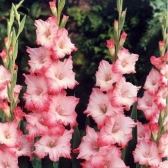 Гладиолус Cheops-этот сорт с первого взгляда покоряет своими пышными цветами . Лепестки бледно-розовые с ярко-розовой каймой по волнистым краям. Цветёт с июля по сентябрь.На цветоносе практически одновременно распускаются все бутоны, образуя сочетание цветков разных размеров и форм. Похожие на розовый зефир, цветы диаметром 15-20 см собраны в пышные соцветия на высоком цветоносе. Прекрасный аромат цветков этого сорта привлекает бабочек. Гладиолус крупноцветковый Cheops – ярко окрашенный сорт, выразительный и в букете и на клумбе.
