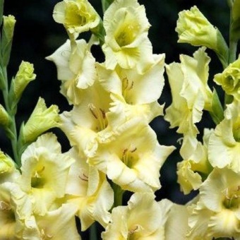 Луковицы гладиолуса гибридного Деббиэн уже в середине лета порадуют бутонами. Растение обильно цветет в июле-августе. Гладиолус любит солнечные места, нуждается в умеренном поливе, прополке. Отличается высоким (примерно 120 сантиметров), вертикально направленным стеблем и кремовыми бутонами со сливочно-желтыми горлами, лепестки которых слегка гофрированы. Любит супесчаные почвы, насыщенные перегноем. Одновременно в соцветии бывает 15-20 красивых бутонов. Добавьте участку изящности и оригинальности. Такой цветок хорошо смотрится в ландшафте и в срезке.