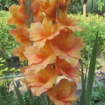 Луковицы гладиолуса гибридного Принцесс Фризл высаживают в глубокие лунки на расстоянии до 25 см друг от друга. Участок для растения выбирают хорошо освещенный или частично затененный, с питательной, рыхлой почвой, без застоя влаги. Дополнительно место должно быть защищенным от ветра. Цветет культура апельсиново-оранжевым цветками с более темной по тону окантовкой и желтыми лепестками у основания. Особенно очаровательно такое растение смотрится в групповых посадках по 5-10 штук. Гладиолусы гибридные Princess Frizzle используют в одиночных посадках на газоне, различных смешанных цветниках и для выращивания на срез.