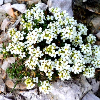 Почвопокровное растение семейства Крестоцветных с мелкими резными листочками. Образует круглые, упругие, ажурные подушки 5-10 см высотой и диаметром до 20 см. Компактное растение с длительным цветением.
