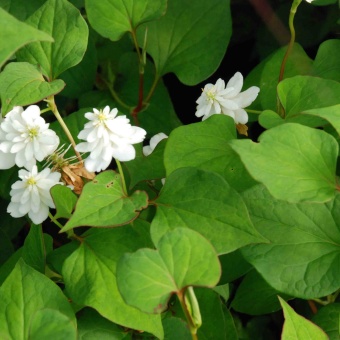 Раскидистый многолетник высотой 20-30 см для мелководий, прибрежных зон и контейнеров, очень активно разрастается в стороны с помощью корневищ, которые «проползают» даже под бетонной дорожкой. Стебли и черешки листьев красные. Листья сердцевидные, кожистые, тёмно-зелёные с фиолетовым оттенком. Цветки белые, маленькие, махровые. Требует влажной почвы и укрытия на зиму.