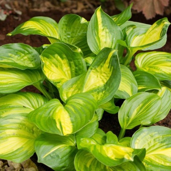 Хосту этого сорта характеризуют блестящие и волнистые листья. Окрас интересный: центр золотисто-жёлтый, а широкие края листовой пластины насыщенные, темно-зелёные. Жилкование хорошо выражено. Листья довольно крупные, плотные и устойчивые, имеют сердцевидную форму. Вид их окраски относится к вариегатным.