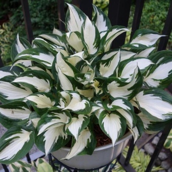Шикарная хоста Файер энд Айс своё название полностью оправдывает. Контрастная листва, по форме напоминающая языки пламени, привлекает внимание ярким сочетанием блестящих снежно-белых центральных фрагментов и очень тёмно-зелёного обрамления, что идут к середине листа. Максимальную декоративность растение проявляет при произрастании в затенённом месте.