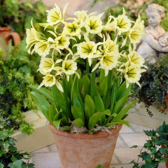 Луковицы исмены Sulphur Queen вырастают очень декоративными растениями, радующими взгляд оригинальными цветами-коронами. Высота многолетника до 40 сантиметров, но он заметен издалека. Длинные, сочно-зеленые лепестки закручиваются изящными спиралями, а крупные бутоны бело-желтой окраски становятся истинным украшением клумбы. Растения эффектны в групповых посадках в качестве ярких акцентов, хорошо смотрятся и в одиночных. Любят солнечное местоположение, тепло, умеренный полив. Почвы предпочтительнее рыхлые. Цветет в мае.