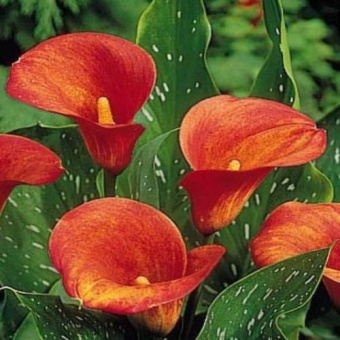 Украшение сада – великолепная калла Моцарт (Calla Mozart) с цветами нежно-персикового оттенка. Соцветие-початок окутано легким покрывалом желтого цвета – уникальный оттенок тропического растения. Предпочитает богато цвести в немного затененных местах. Первые бутоны появляются в конце июня и цветут до конца сентября. Отсутствие аромата замещается необычайным оттенком цветков. Высота растения достигает 70 сантиметров. Листья темно-зеленые, восковые. Калла сохраняет декоративность в течение полутора месяцев. Цветы прекрасно смотрятся в срезке, идеальны для больших букетов. Чудесное растение для клумб, годится для выращивания в горшках.