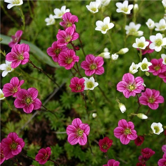 Смесь компактных сортов камнеломок. Окраска цвета от белоснежно-белых до пурпурно-красных. Прекрасно подходит для выращивания на альпийских горках и в миксбордерах , как растение первого плана. Отличается высокой декоративностью в течении всего года.