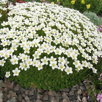 Рассада камнеломки Рокис Вайт (Rockies White) обладает небольшими листиками, собранными в корневую розетку. Цветение собрано в метельчатые соцветия. Цветет в июне нежными белыми цветочками с яркой желтой серединкой. Вырастает около 5-25 см в плотный кустарник. Преимущества камнеломки Рокис Вайт: — неприхотлива — хорошо переносит перепады температур — быстрорастущая Семена камнеломки Рокис Вайт любят посадку на дренированной, влажной почве.
