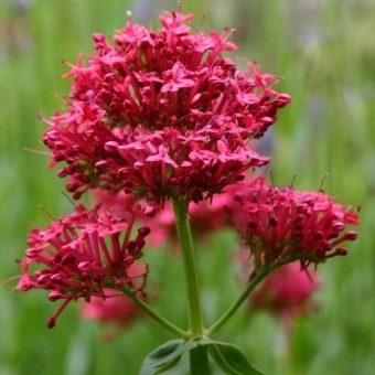 Кентрантус Ruber Coccineus – отличный выбор для каменистого сада, в сочетании с шалфеем дубравным позволяет создать эффектный фон для цветов розария. Достигает высоты 0,6-1 м, в июне покрывается россыпью маленьких алых цветков, собранных в кистевидные соцветия. Расположение соцветий рыхлое, листья с зубчатым краем серо-зеленого цвета.