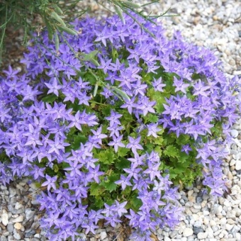 Колокольчик гарганский — многолетнее растение до 15 см высотой с ползучими и приподнимающимися очень хрупкими стеблями. Образует компактный кустик. Листья черешчатые, некрупные, округлые, трехзубчатые. Цветки синие с распростертыми лепестками, похожи на звездочки, до 4 см в диаметре. Цветение обильное.
