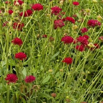 Короставник македонский Mars Midget «Knautia macedonica» — в высоту достигает не более 30-60,окраска цветка малиново-красный,цветет — Июнь-август