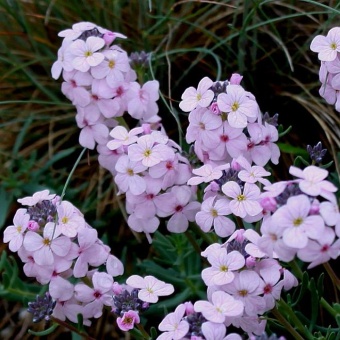 Крылотычинник крупноцветковый Warley Rose (Варлей Роуз). Высота до 20-30 см. Цветки розовые, собраны в гроздья, раскрываются в мае-июле. Листья шиловидные, серо-зеленые, до 1 см длиной. Растение вполне зимостойко в Средней полосе России.