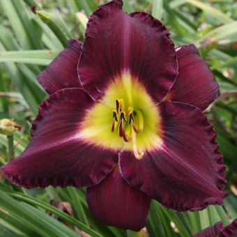 Лилейник Bella Lugosi «Hemerocalis» — в высоту достигает не более 70-80,окраска цветка темно-пурпурный бархатистый с лимонно-желтым горлом,цветет — Июль-август