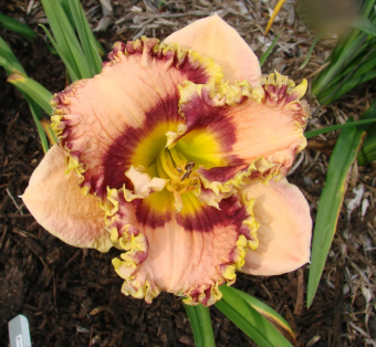 Лилейник «Bonibrae Sharky» имеет розово-бордовый с желтой каймой и жёлто-зелёным центром крупный цветок. Цветки крупные, до 25 см, высота до 70 см. Предпочитает солнечные или затемненные участки. Зимостойкий, не требует укрытия в зимний период.