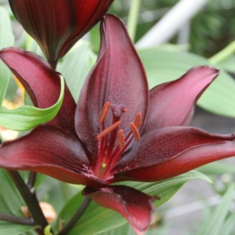 Лилия Mascara относится к виду Азиатских гибридов. Цветки крупные, диаметром 17 см, бордовый с черно-фиолетовым напылением, растущие вверх и в бок. Лилия зацветает в конце июня-первой половине июля. Высота растения 90 см. Время посадки осенью — август-сентябрь или весной — в мае. Глубина посадки — 15-20 см. Расстояние между луковицами — 25-35 см. Расположение для посадки — открытые и затенённые места. Растение требует укрытия в первый год. Предпочитает нейтральную или слабокислую хорошо дренированную почву. Лилия неприхотливая, устойчивая к грибным заболеваниям, зимостойкая.