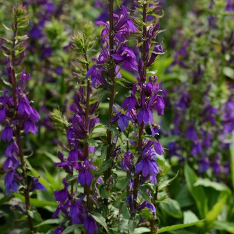 Лобелия прекрасная — великолепное растение высотой 60 см, усыпанное яркими, крупными (до 3 см в диаметре), необычными цветками, всегда находится в центре внимания садоводов.Применяется как декоративно-лиственное и красивоцветущее растение в цветниках, рабатках и группах, в бордюрах и ковровых композициях.
