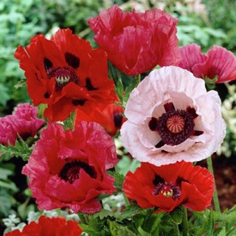 Мак восточный Pizzicato «Papaver orientale» — в высоту достигает не более 80-100,окраска цветка смесь окрасок ,цветет — Май-июнь
