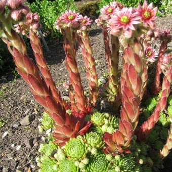 Молодило гибридное «Funckii» — один из самых зрелищных сортов, который образует розетки 10-12 см в диаметре, в исключительных случаях разрастается до 15 см. За один сезон можно наблюдать как из маленького растения вырастает крупная розетка, которая зацветает высоким колосом и, как это принято у представителей этого вида, тут же умирает, успев перед этим набрать вокруг себя множество «деток». Лист зеленый, размер суперкрупный.